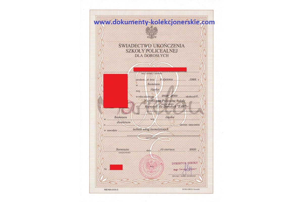 świadectwo ukończenia szkoły policealnej, świadectwo dojrzałości maturalne,
