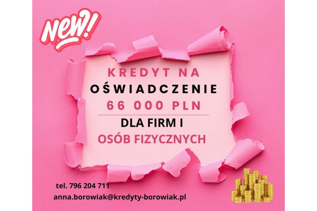 KREDYT DLA FIRM I OSÓB FIZYCZNYCH NA OŚWIADCZENIE – DO 66 000 ZŁ!